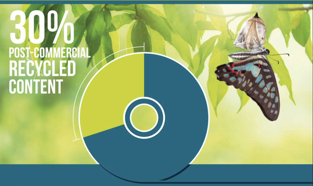 - RECYCLE – 30% PCR (Post Commercial Recycled, azaz egyszer már csomagolásra használt) alapanyagot tartalmazó stretch-fóliát használnak csomagolásra, mint például a Manunature® RR