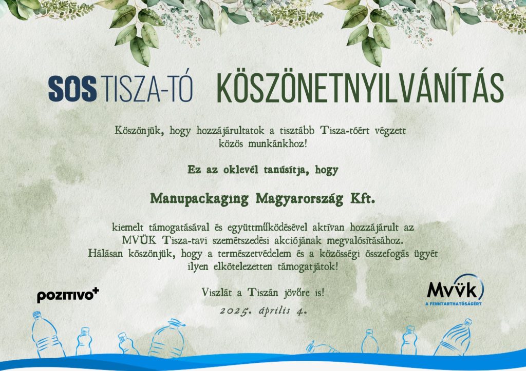 A Manupackaging Magyarország számára a fenntarthatóság nem csupán üzleti cél, hanem közös társadalmi felelősségvállalás is. Ezért csatlakoztunk örömmel az idei „SOS Tisza-tó” elnevezésű nagytakarításhoz, amely új rekordot állított fel a környezettudatos kezdeményezések között.