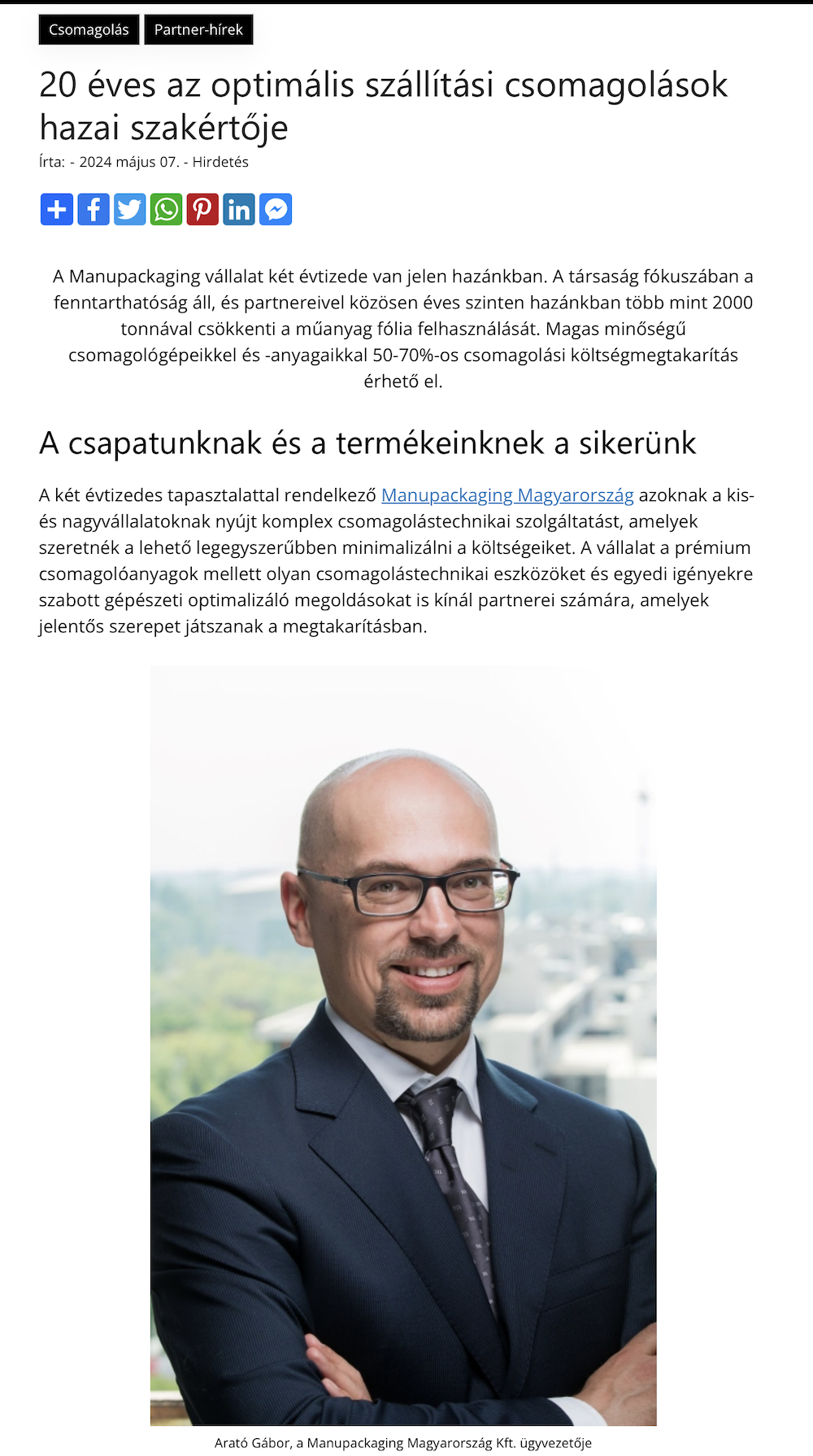A TRANSPACK cikk teljes terjedelmében itt olvasható >>> marketing Related postsDunnage Airbags – védelem a rakománynak2021.02.17.A csökkentésre könnyű rákapni2021.11.25.Adatvédelmi nyilatkozat2017.03.22. Previous post56%-ot spóroltak egy gép beszerzésével, így 1 éven belül még egy gépet tudtak vásárolniNext postFenntartható beszerzés a gyakorlatban. Beszélgetés Fertetics Mandyvel /Vállalati fenntarthatóság és felelősségvállalás szakértővel